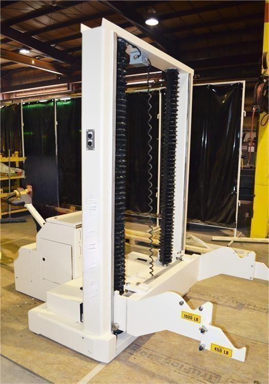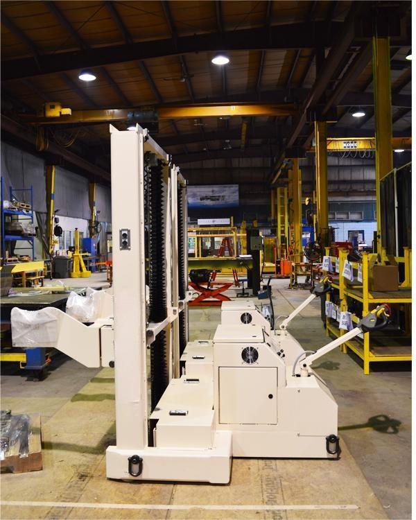 Designed and manufactured for a well-known customer in the office equipment industry, this self-propelled battery-powered material handling unit is designed to accurately locate rolls of valuable materials in storage facilities, each weighing approximately 0.5 tons. The equipment is equipped with a mast lift that enables precise lifting and lowering operations at ground level and 2 meters above the mast lift height. The operator can achieve incremental and precise lifting through the electric pallet truck handle to ensure accurate positioning and safe handling of material rolls. The equipment is designed to improve operating efficiency and accuracy and is suitable for industrial environments that require high-precision processing.