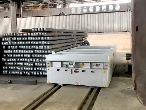 This 20-ton steel mill automatic rail transporter is an automated...